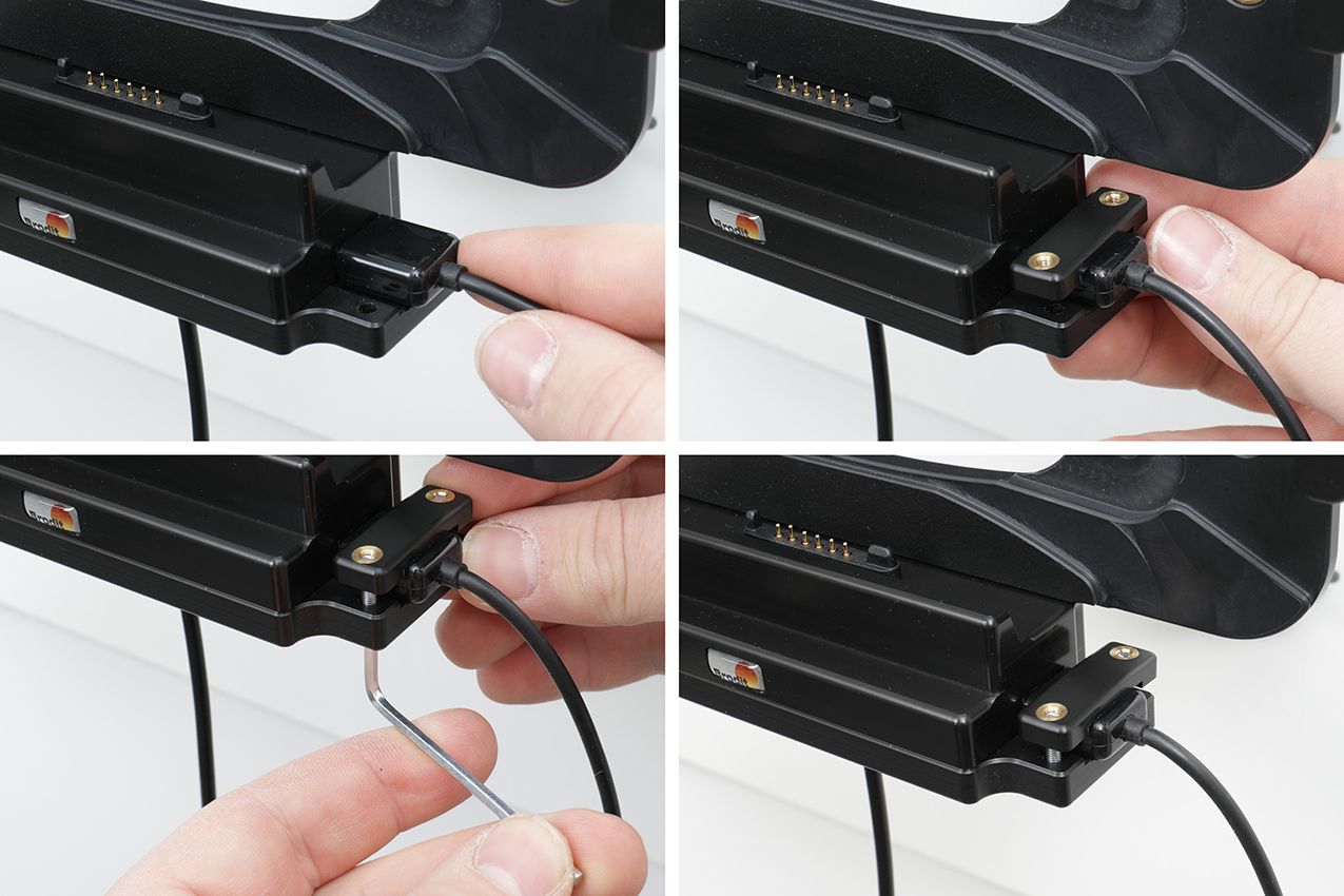 Dankzij het eenvoudig schakelsysteem kunt u alleen de houder upgraden en de geïnstalleerde kabels behouden. Het scheelt je een hoop tijd! Bij het upgraden naar een nieuw apparaat hoeft u geen volledige installatie meer uit te voeren. Hetzelfde geldt voor onderhoud in case van garantie of schade. U koppelt de houder eenvoudig los van de laadkabel via de Molex 6-pins snelkoppeling, en sluit vervolgens de nieuwe houder aan. De omschakeling is in een paar seconden gedaan.